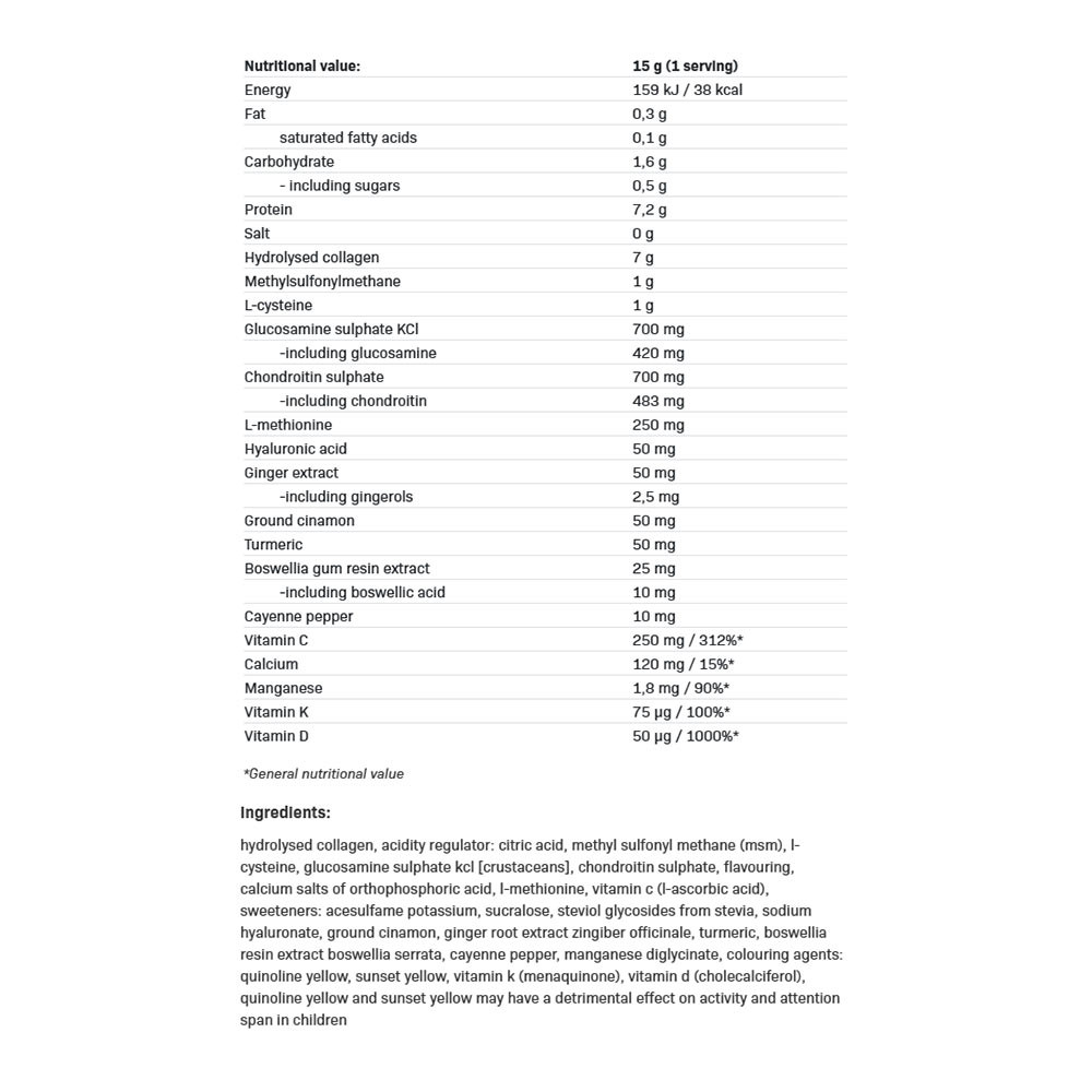 ¡Consumir inmediatamente después de la preparación! Destinado a personas activas mayores de 18 años. ¡No consumir si es sensible a alguno de los ingredientes! No exceda la dosis diaria recomendada. Los complementos alimenticios no deben utilizarse como sustituto de una dieta variada. Se recomienda una dieta equilibrada y un estilo de vida saludable. Alto contenido de vitamina C. No recomendado para personas que padecen cálculos renales o propensas a su formación. Antes de usar, se recomienda comprobar su nivel sanguíneo de 25-(OH)D y consultar los resultados con su médico o farmacéutico. Puede contener derivados de cereales que contienen gluten, soja y leche. Cierre siempre el envase después de su uso.