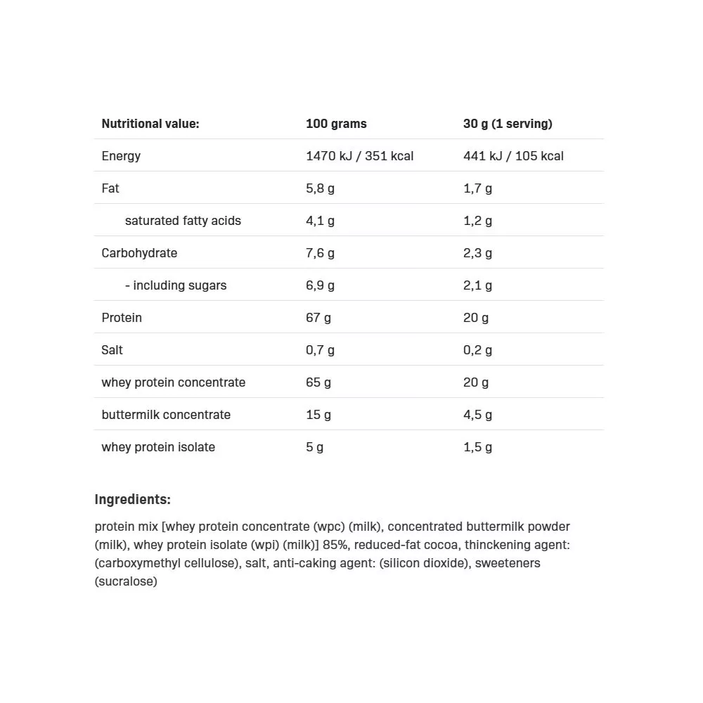 ALLNUTRITION WHEY DELICIOUS PROTEIN es un suplemento dietético rico en proteínas creado para personas activas que valoran no solo la eficacia, sino también un excelente sabor. Es una combinación única de concentrado e isolado de proteína de suero, enriquecida con suero de mantequilla en forma concentrada. Como resultado,