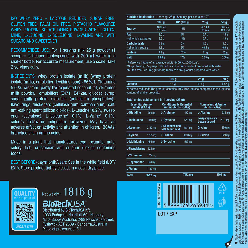 BioTechUSA Iso Whey Zero (1816 g, Pistacho)