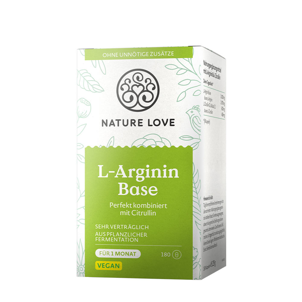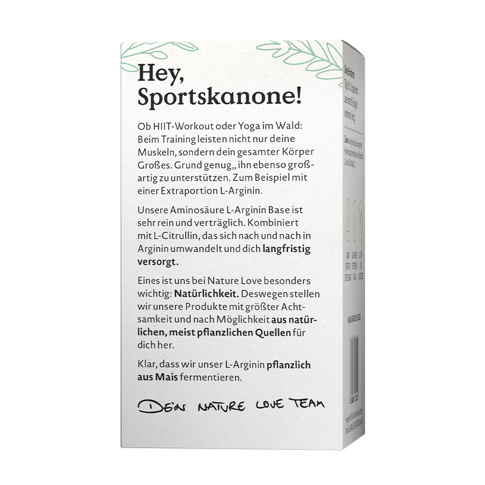 Sin OGMYa sea un entrenamiento HIIT o yoga en el bosque: durante el ejercicio, no solo tus músculos, sino todo tu cuerpo rinde al máximo. Por eso es importante apoyarlo adecuadamente. Por ejemplo, con una porción extra de L-arginina. Nuestro aminoácido Base de L-Arginina es muy puro y bien tolerado. Combinado con L-citrulina, que se convierte gradualmente en arginina y te proporciona un suministro prolongado. Fermentamos nuestra L-arginina únicamente a partir de maíz, de origen vegetal.