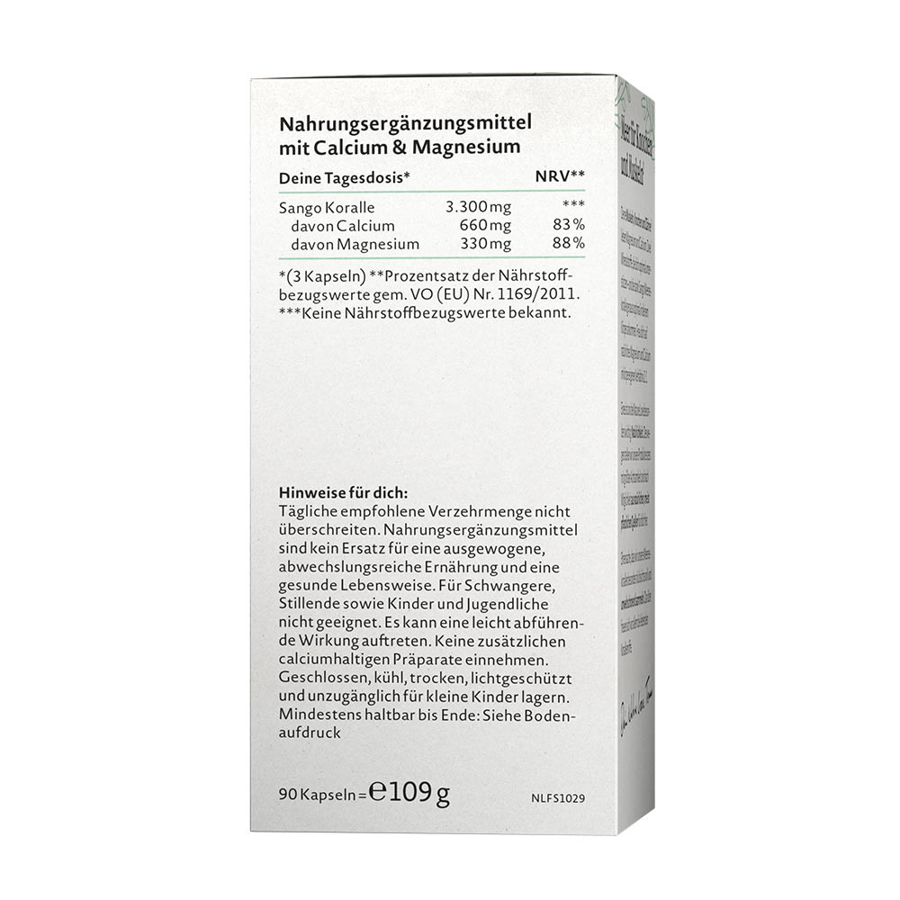 A tus músculos, huesos y dientes les encantan el magnesio y el calcio. Dos minerales que te apoyan de manera óptima – y gracias al coral marino Sango, llegan a tu cuerpo de la mejor manera posible. Disfruta de magnesio y calcio natural en la proporción propia del cuerpo de 2:1. Recogemos nuestros corales marinos con especial cuidado y de manera respetuosa con el medio ambiente. Los arrecifes de coral vivos lo agradecen especialmente.