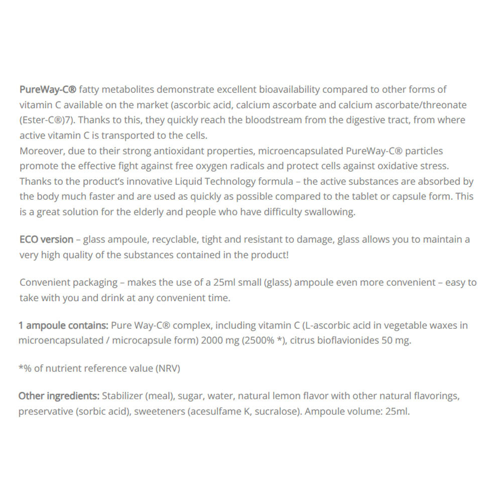 Suplemento dietético líquido en ampollas, con un alto contenido de vitamina C - hasta 2000 mg en una sola ampolla.