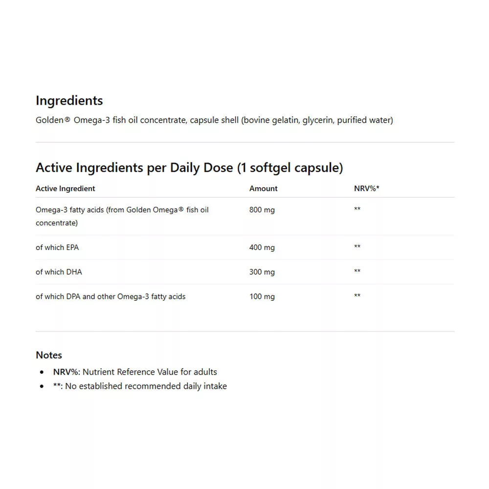 ¡Cápsulas de aceite de pescado GOLDEN® Omega 3 con alto contenido de EPA y DHA para apoyar la salud del corazón, cerebro y visión!