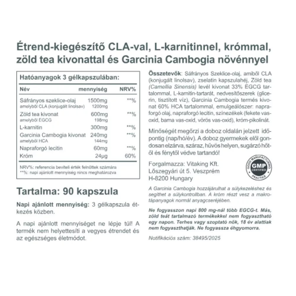 Un estilo de vida consciente no se trata de la auto-negación, sino de prestar atención constante a ti mismo. Vitaking Fat Burner contiene ingredientes naturales que pueden ayudar a que tu dieta saludable y el ejercicio regular den resultados verdaderamente visibles. La combinación armoniosa de CLA, L-carnitina, cromo, extracto de té verde y Garcinia cambogia apoya a tu cuerpo cuando se combina con la dieta adecuada.