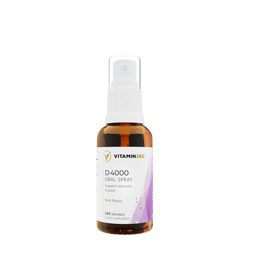 Vitamin360 D4000 Oral Spray, elaborado con aceite MCT para una máxima biodisponibilidad. Una sola pulverización refrescante con sabor a menta aporta 4000 Unidades Internacionales (UI) de vitamina D3 a tu organismo – muy por encima de la recomendación diaria general, pero aún así es segura y eficaz.