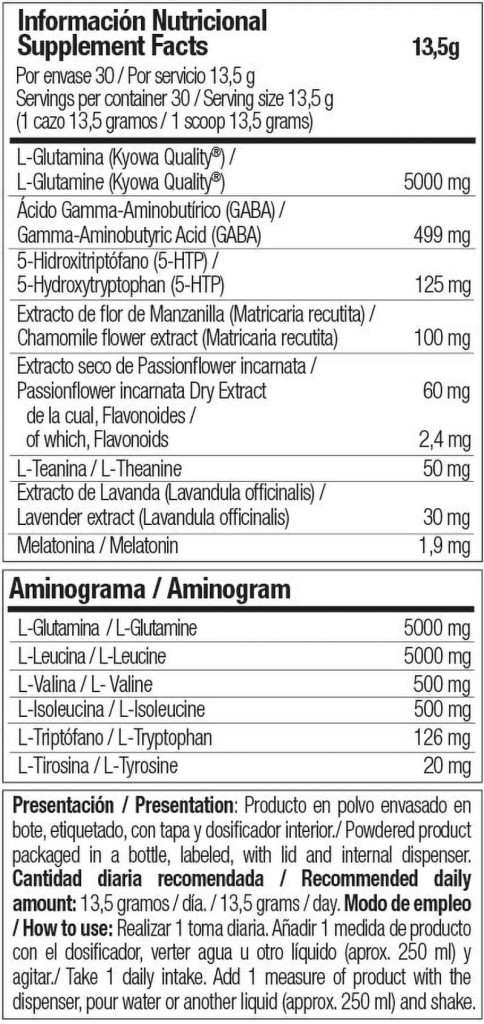 Cuenta con una fórmula reforzada de aminoácidos y extractos para potenciar nuestro descanso y recuperación muscular durante el sueño.