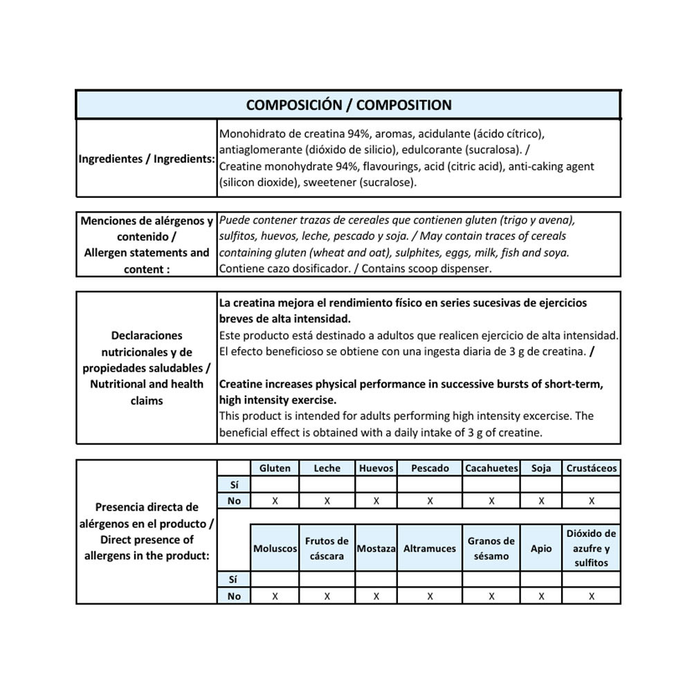 Supplementation with creatine monohydrate improves energy performance and recovery from fatigue and physical exertion, as it is a precursor of adenosine triphosphate (ATP), the main source of mitochondrial energy responsible for strength and energy during the first 10-12" of anaerobic exercise.